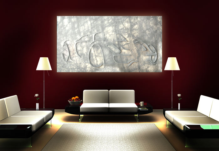 Das Relief wird mit sehr dünner Wandstärke geliefert und ist somit relativ leicht. Dadurch ist es zudem möglich, die Skulptur komplett als Leuchtobjekt in Szene zu setzen. Das Kunstobjekt kann bündig in eine Wand eingelassen werden oder frei im Raum-eingebettet in einen V4A Rahmen- stehen. Jedes Relief ist ein Unikat und wird auf Wunsch mit ihrer persönlichen Fahrgestell- nummer versehen. |